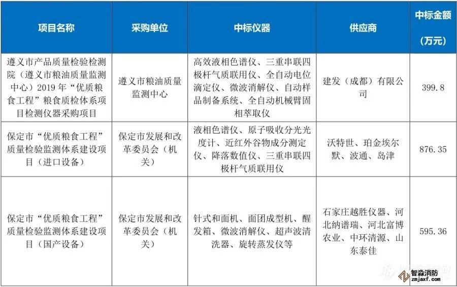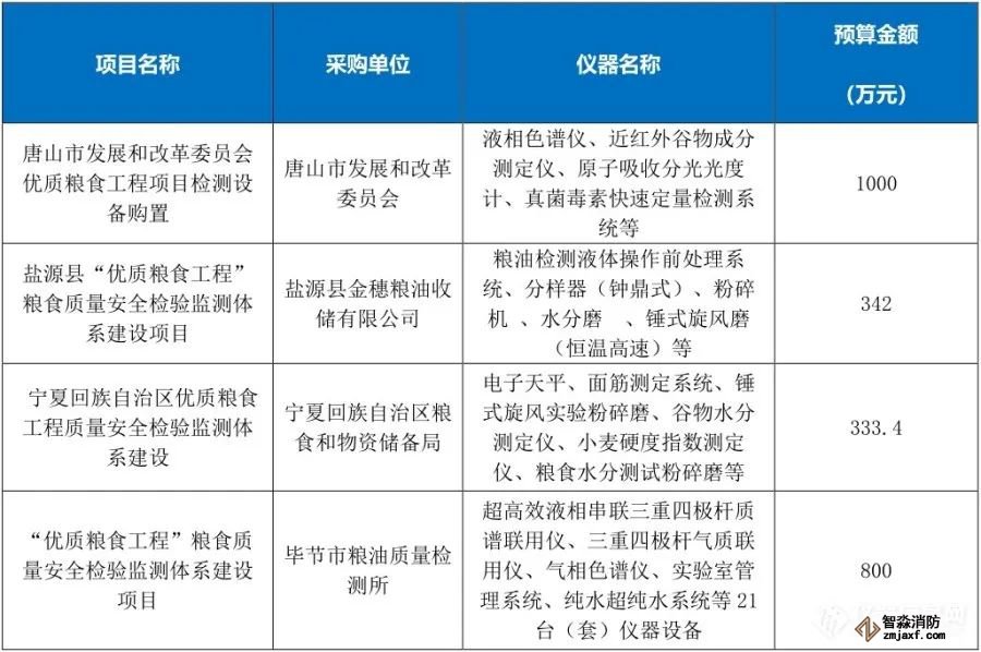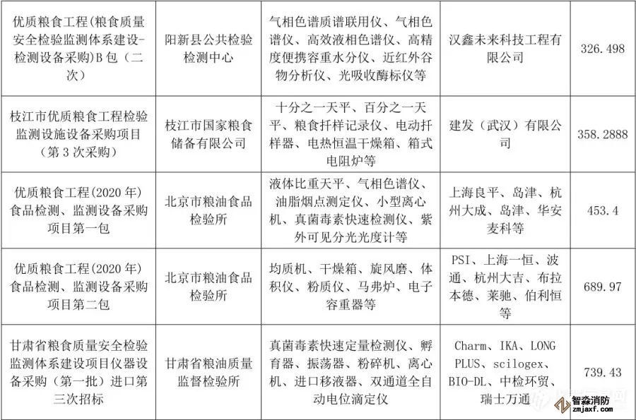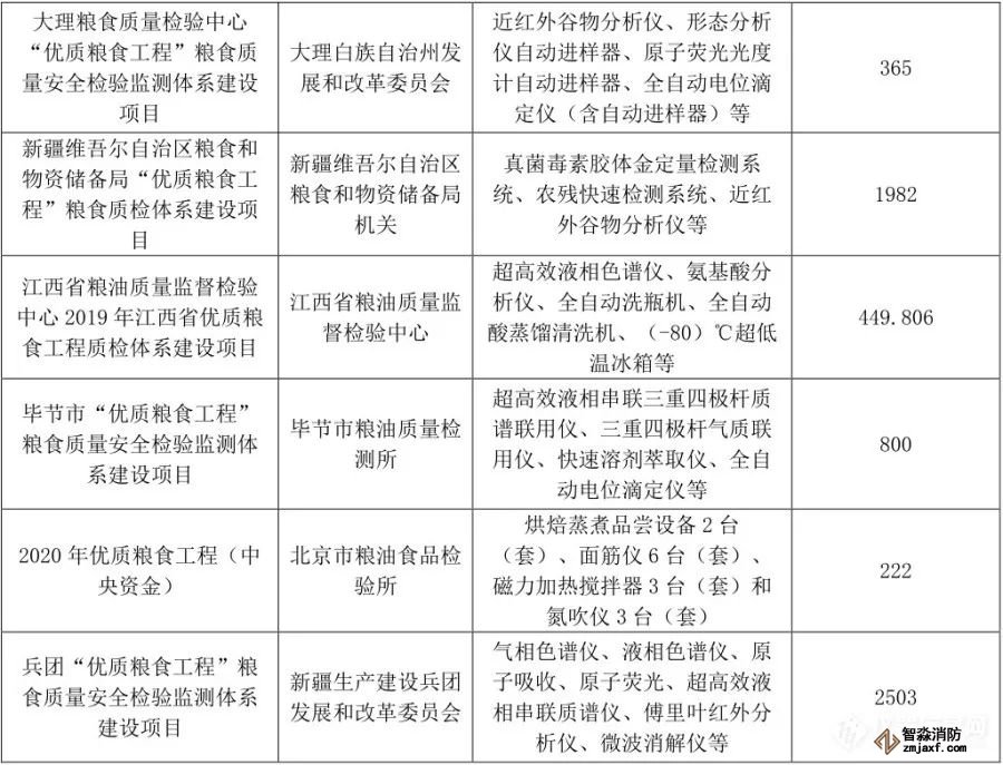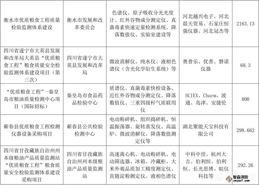 “優質糧食工程”儀器相關中標項目列表(1月1日至6月30日)