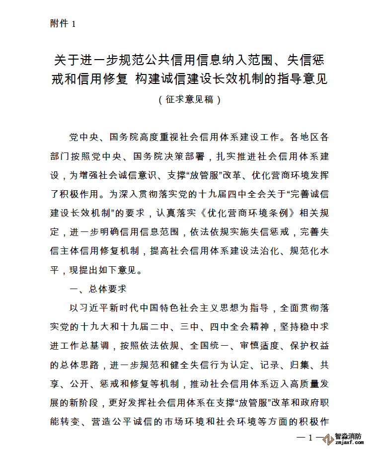 附件:1. 關于進一步規范公共信用信息納入范圍、失信懲戒和信用修復 構建誠信建設長效機制的指導意見(征求意見稿)